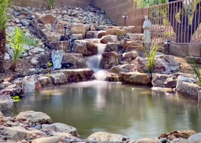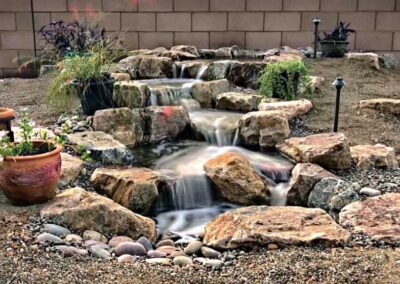 Both types of waterfalls, with a pond and without (pondless), provide you with the same heavenly sounds of falling water. The difference is the benefits each provides. A pond can include aquatic plants, fish habitats, and additional features. A pondless needs less space and requires less maintenance.